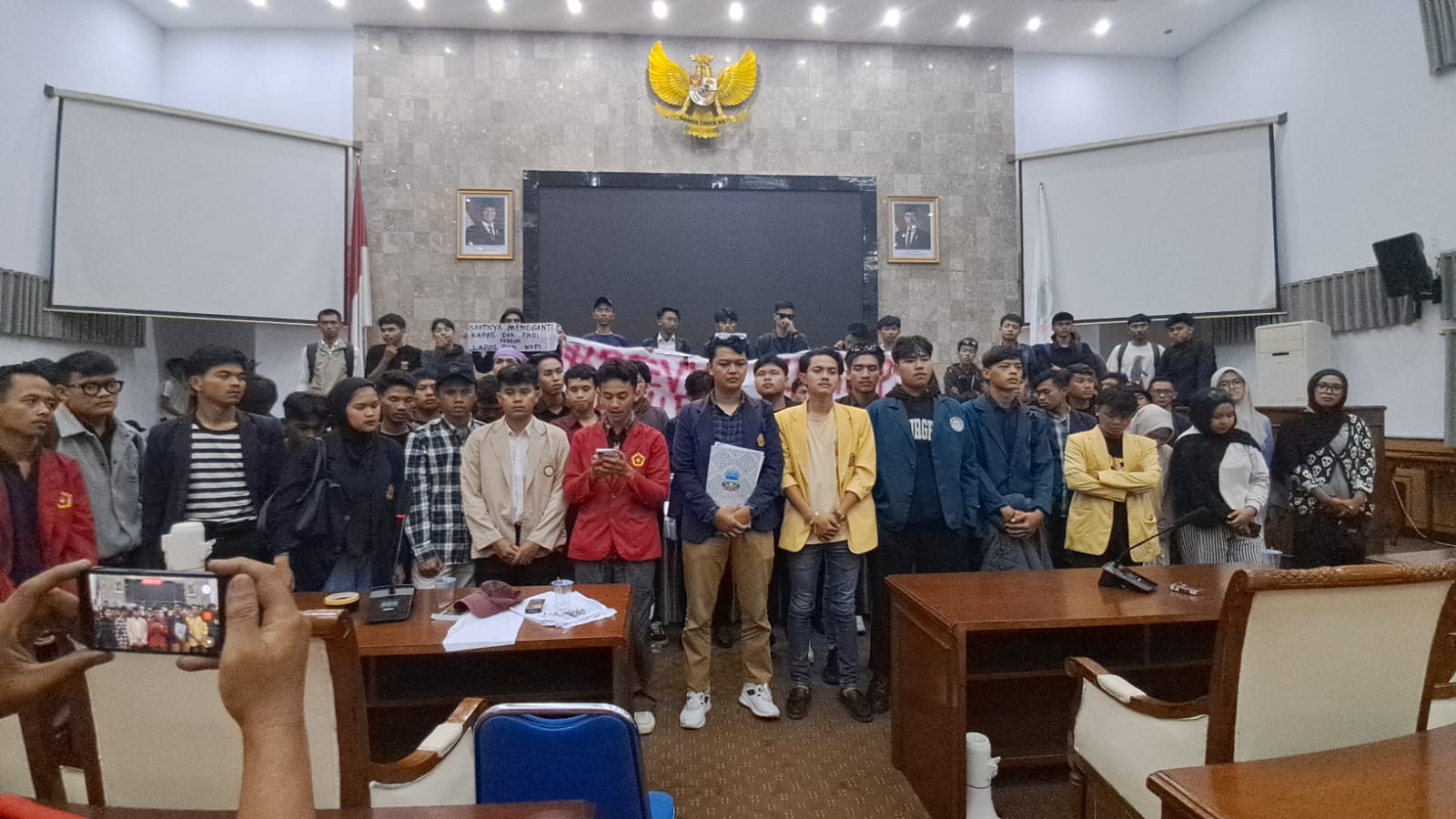 Aksi diwarnai dengan rangkaian orasi dari perwakilan mahasiswa yang secara bergiliran menyampaikan kritik dan tuntutan mereka. Setelah berlangsungnya demonstrasi, massa aksi diterima oleh anggota legislatif H. Imat Rohimat dari Fraksi Golkar dan Luqi Saadah dari Fraksi PKB, yang menyimak langsung dan menanggapi aspirasi yang disampaikan mahasiswa.
