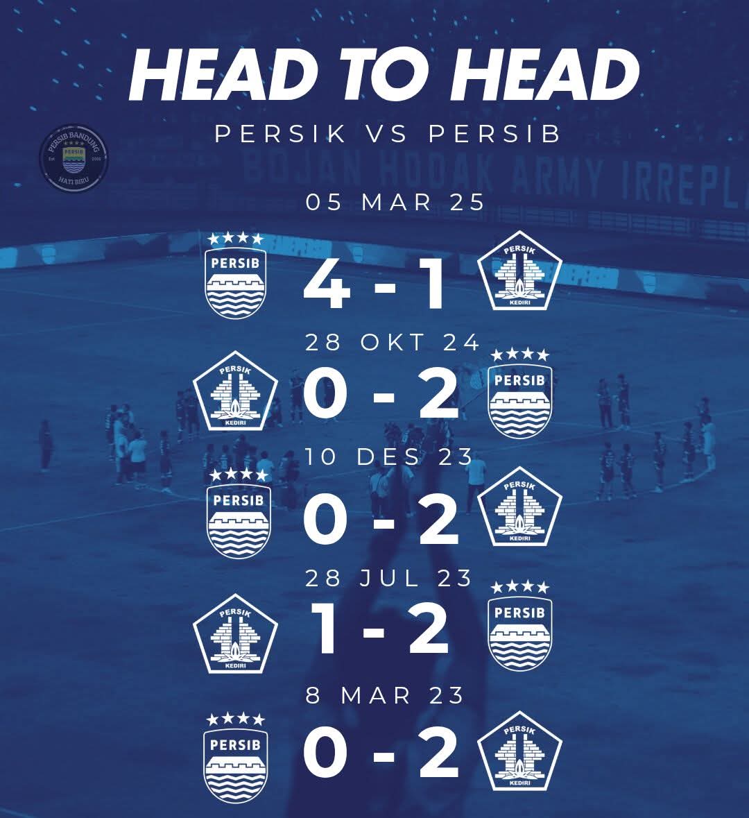 Laga ini bukan hanya ujian kekuatan taktik, tetapi juga kedewasaan bermain. Tim yang mampu mengendalikan emosi, menjaga fokus, dan disiplin pada rencana permainan berpeluang keluar sebagai pemenang.Kick-off pertandingan ini dipastikan menjadi magnet bagi pecinta sepak bola Tanah Air. Kediri siap mempertahankan harga diri kandang, Persib datang membawa ambisi besar. Adu kuat strategi dan gengsi pun tak terelakkan.